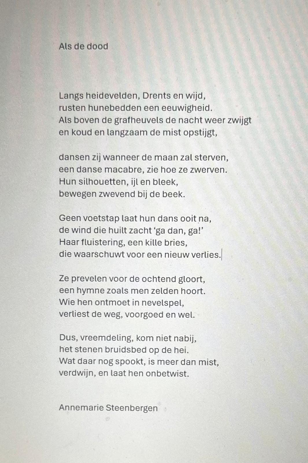 Op 21 juli kreeg ik een verrassing in de brievenbus. Het boekje 'Witte wieven' met daarin een handgeschreven tekst dat mijn gedicht 'als de dood' is gewaardeerd door de jury. Hartstikke leuk!